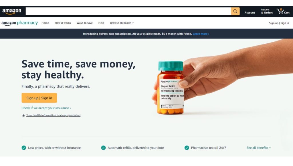 - Insurance and Savings: The platform works with most insurance plans but also offers options for those without insurance or looking to save on their medications. Prime members can enjoy exclusive discounts and even get some of their medications for a flat fee through the RxPass program.